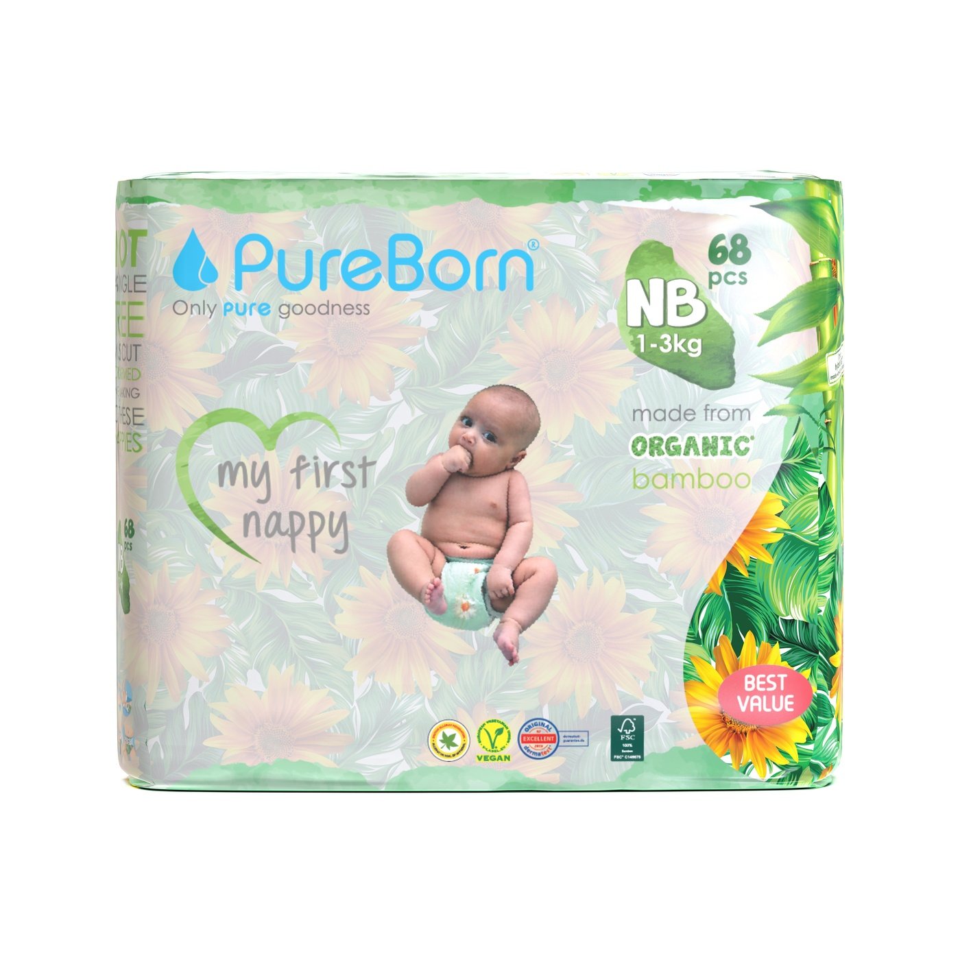 PureBorn Nappies are not only safe and gentle on your baby’s skin, with all the accreditations to prove it, but they are also safe for our environment. We use sustainably-sourced materials from FSC certified forests, they are vegan and cruelty free and our packaging is made from sustainably-sourced materials. If all of that isn’t enough, they are also available in super fun prints!