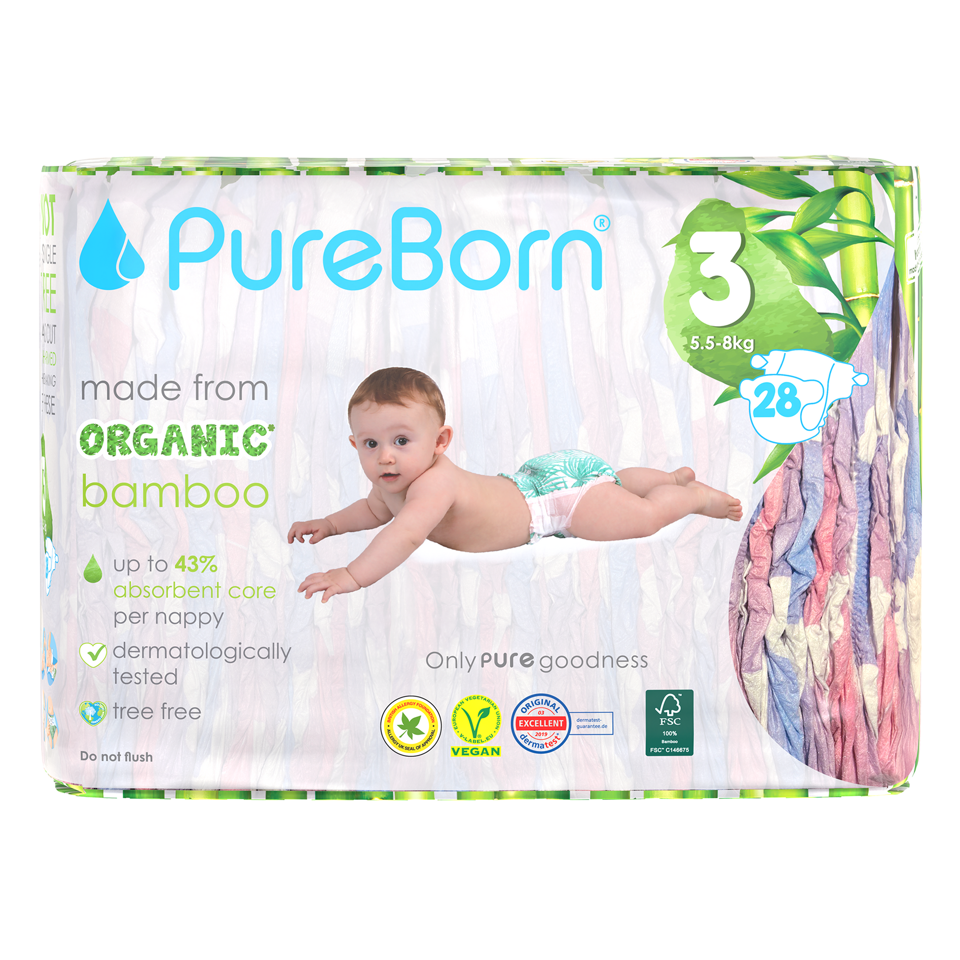 PureBorn Nappies are not only safe and gentle on your baby’s skin, with all the accreditations to prove it, but they are also safe for our environment. We use sustainably-sourced materials from FSC certified forests, they are vegan and cruelty free and our packaging is made from sustainably-sourced materials. If all of that isn’t enough, they are also available in super fun prints!