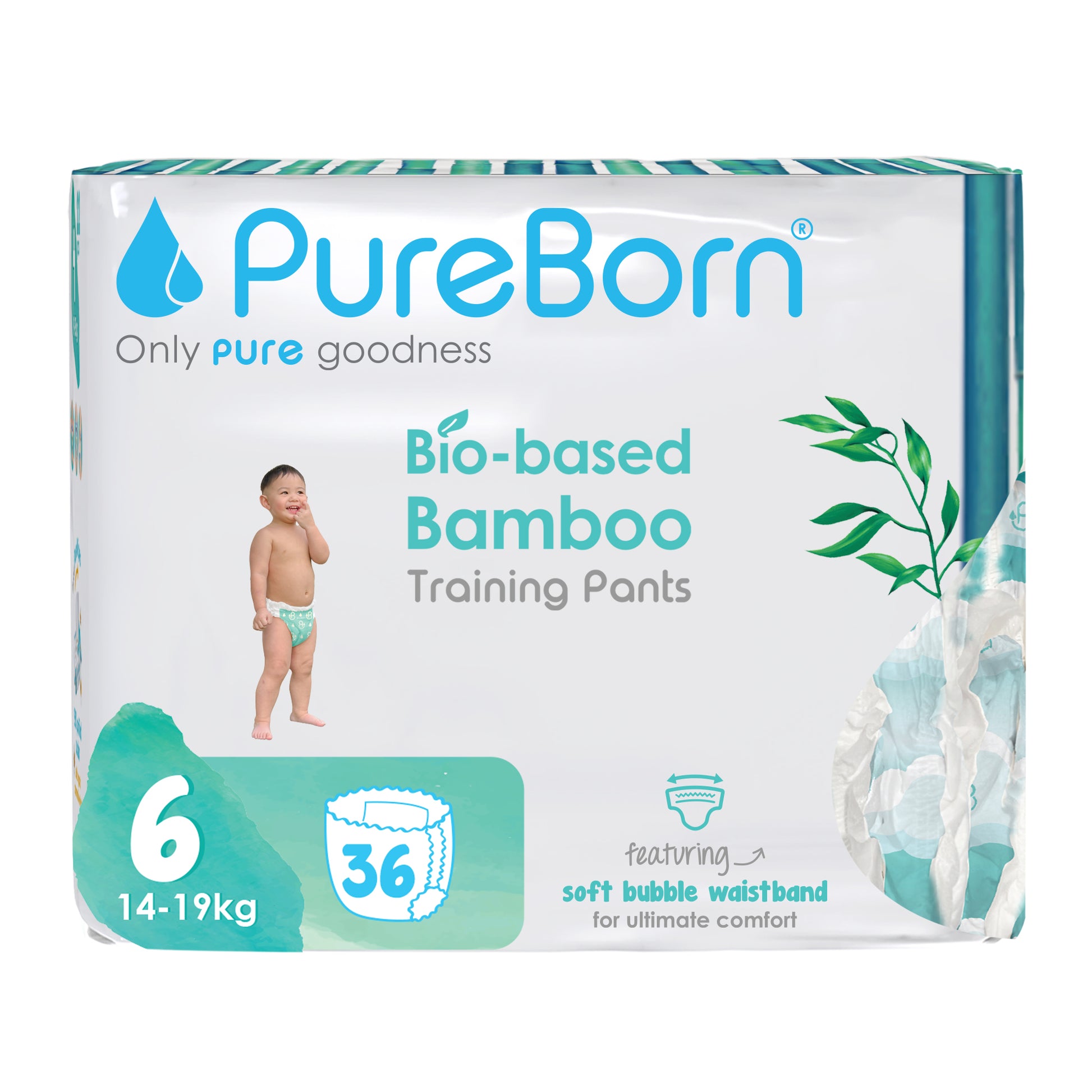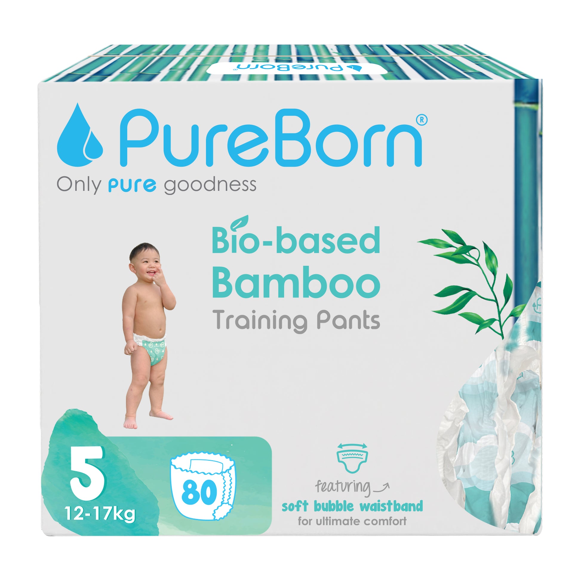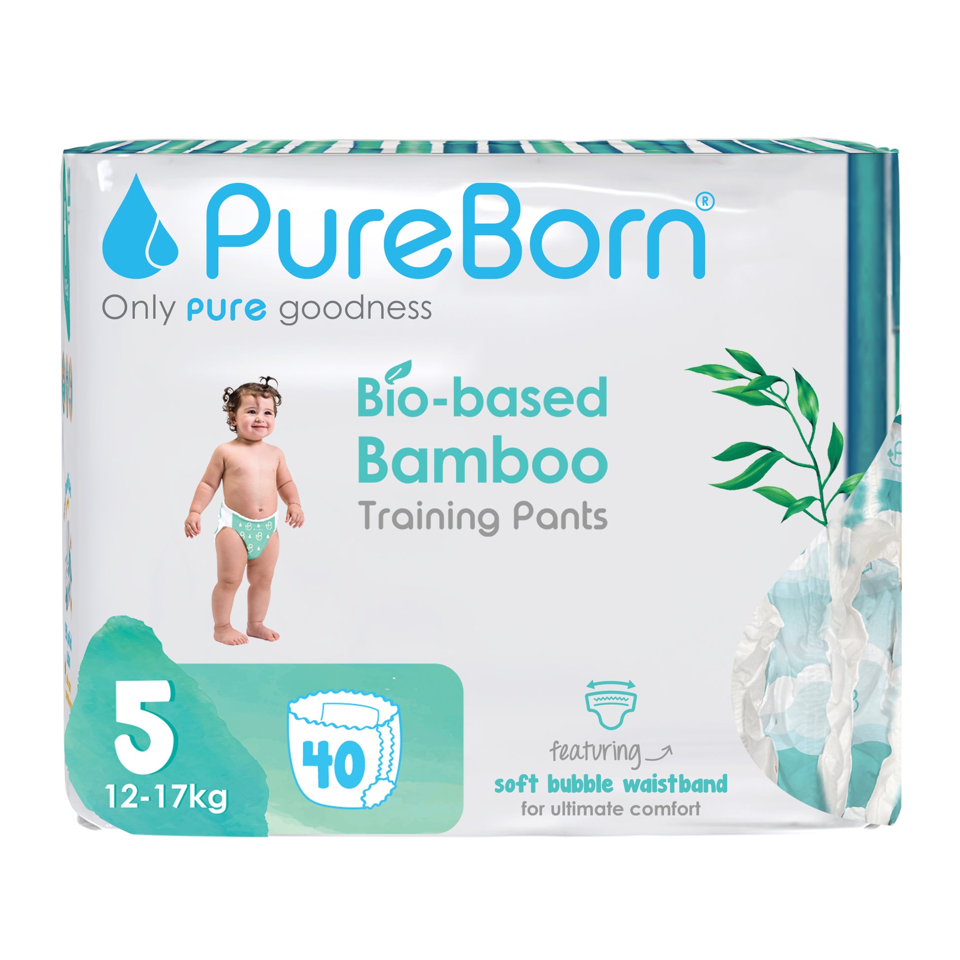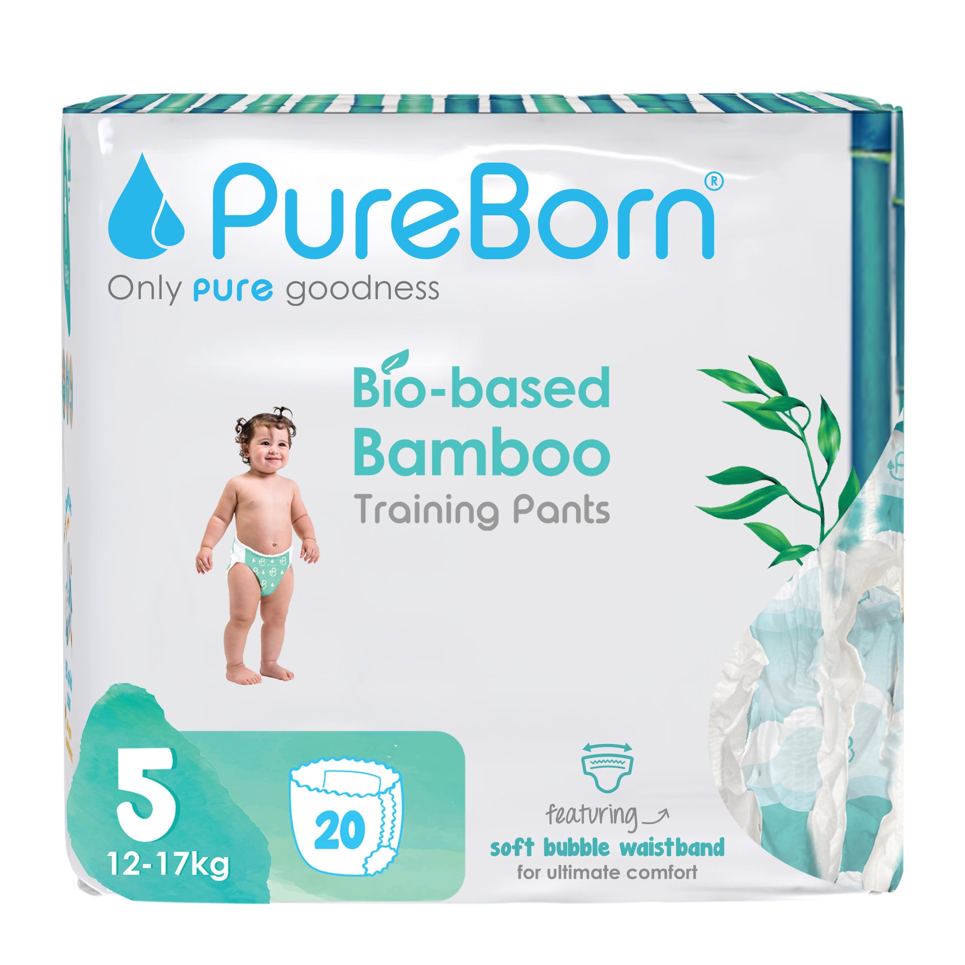 PureBorn Day Dreams Pants are crafted from bio-based bamboo fibers, ensuring a soft, eco-friendly experience for your little one. These pants feature a soft bubble waistband for a comfortable fit and are made with FSC-certified wood pulp core for responsible, sustainable care. The extra-soft top sheet, derived from sustainably harvested corn and sugarcane, provides added comfort while maintaining up to 12 hours of dry protection. Dermatologically tested, vegan, and cruelty-free, these pants offer a wider fit for flexibility and movement, ensuring your baby stays comfortable throughout the day.
